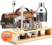 Cocktail Shaker Set Bartender Kit 24 pcs w/ Stand & Travel Bag